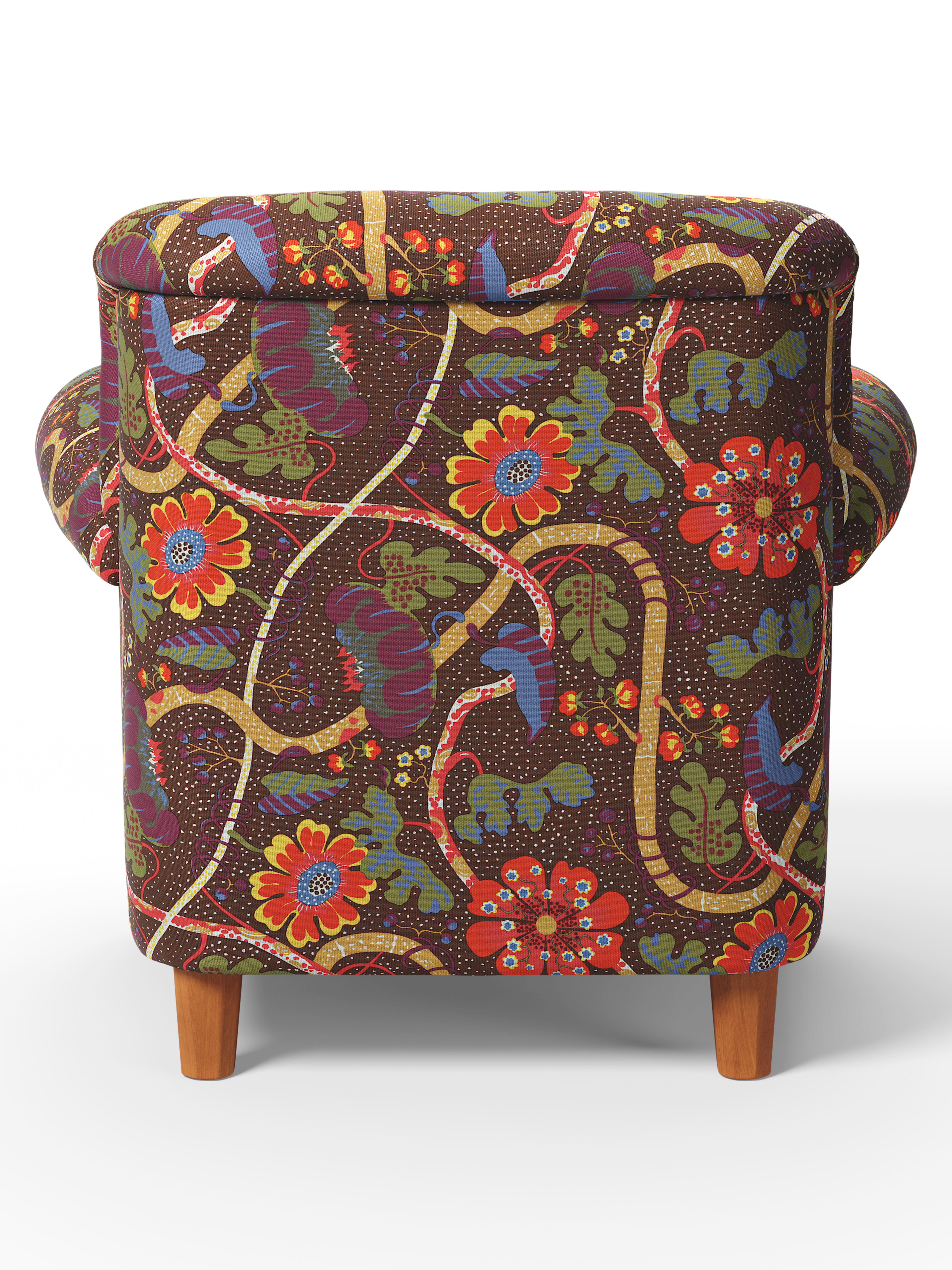 Med Svenskt Tenns breda utbud av blomstrande och enfärgade möbeltyger kan du anpassa din fåtölj efter ditt behov och din personliga stil. Välj bland ikoniska mönster av Josef Frank, såsom Celotocaulis, Manhattan och Teheran, eller enfärgade möbeltyger för en mer nedtonad känsla.